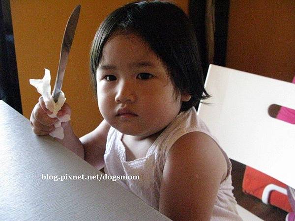 閒妹已經餓到等不及 抓著刀在等主菜