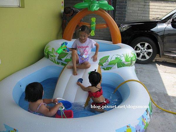 vivian家的泳池真的很讚 兩層式有深有淺 中間還有溜滑梯