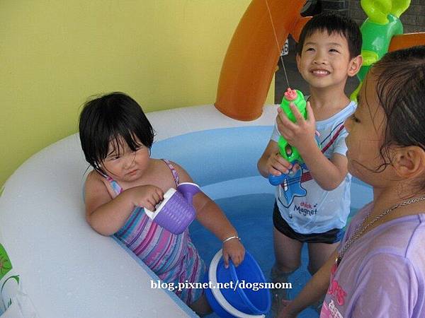 安安姊姊大方出借的水槍一到小睿手上真是眾人都害怕 噗噗