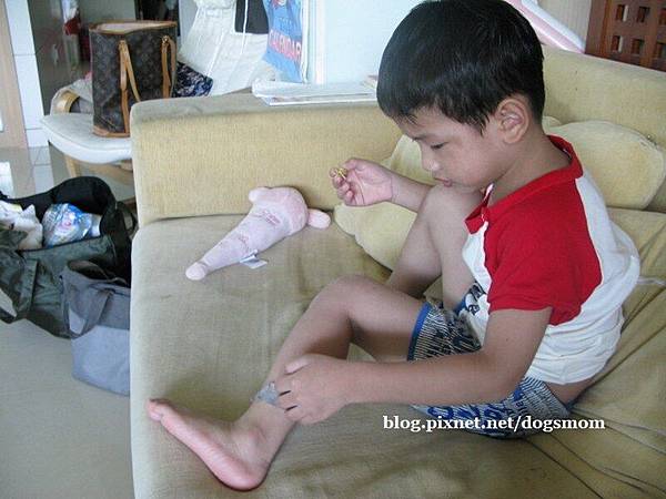 這次玩水終於把小睿死都不肯拔起來的透氣膠帶給甘願拔了起來