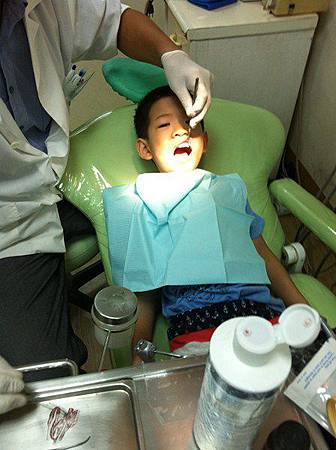 本來是叫他順便洗牙,後來牙醫師說小孩不用洗,塗塗氟就好